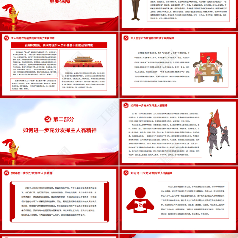 工图网提供主人翁意识党课PPT红色精美发扬主人翁精神赢取双胜利疫情防控专题党课供会员免费下载。更多精彩党课PPT素材,尽在工图网。