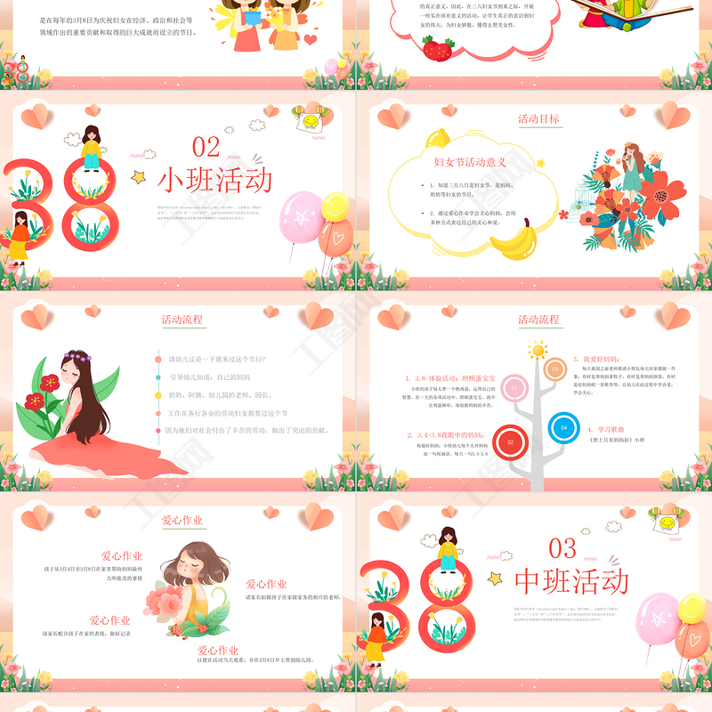 三八妇女节班会PPT精美可爱幼儿园女神节活动策划下载 Array