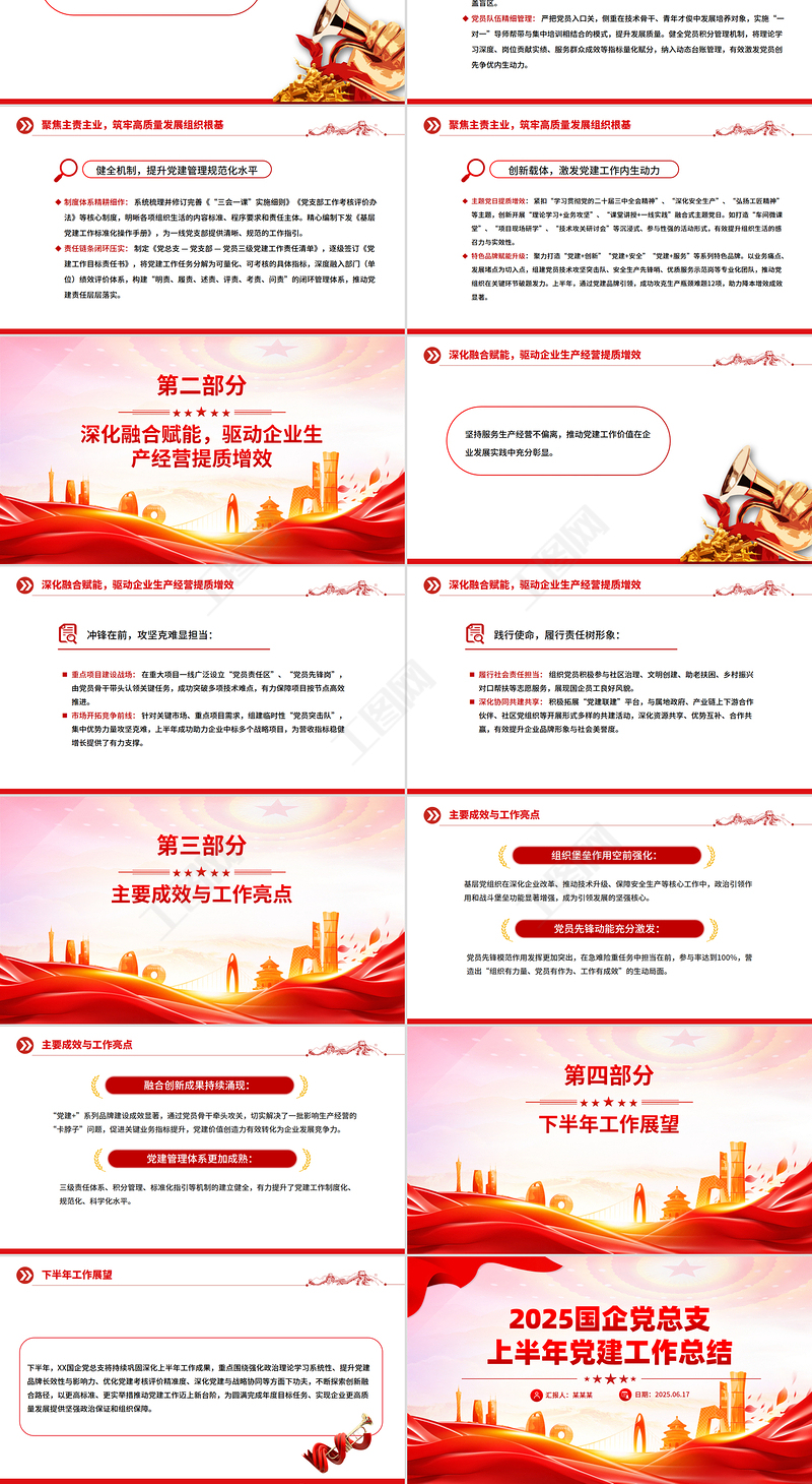 工图网提供2025年国企党总支上半年党建工作总结PPT模板下载供会员免费下载。更多精彩党课PPT素材,尽在工图网。