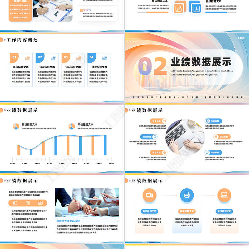 业绩数据展示Add your text content.Add your text content.Add your text.Add your Add your text content.Add your text.Add your text.02LOGO商务工报告/工作总结/工作计划/竞聘报告/述职报告