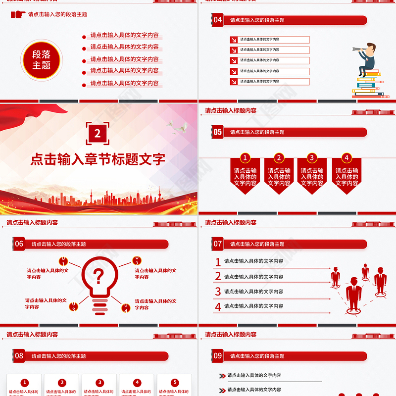 红色创意党政机关党建工作总结述职汇报PPT模板 Array