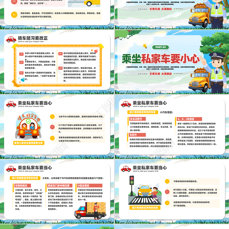 安全交通进校园PPT彩色卡通风安全教育主题班会课件 Array