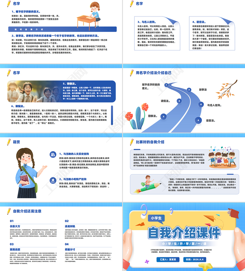 工图网提供小学生如何自我介绍PPT精美风开学第一课课件供会员免费下载。更多精彩党课PPT素材,尽在工图网。