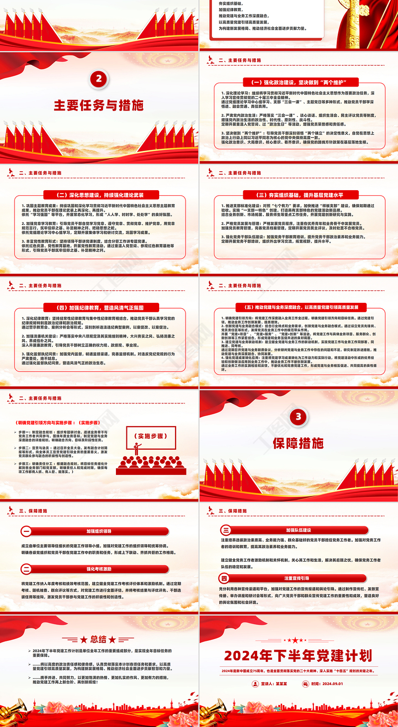 2024年下半年党建计划PPT红色精美党员干部学习教育党课 Array