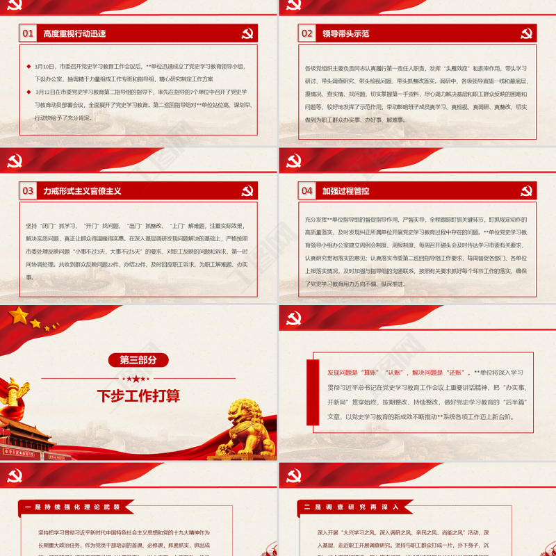 学党史 悟思想 办实事 开新局 PPT 红色 简洁 2021年 党史学习 教育阶段性 总结报告 实用党课 课件 Array