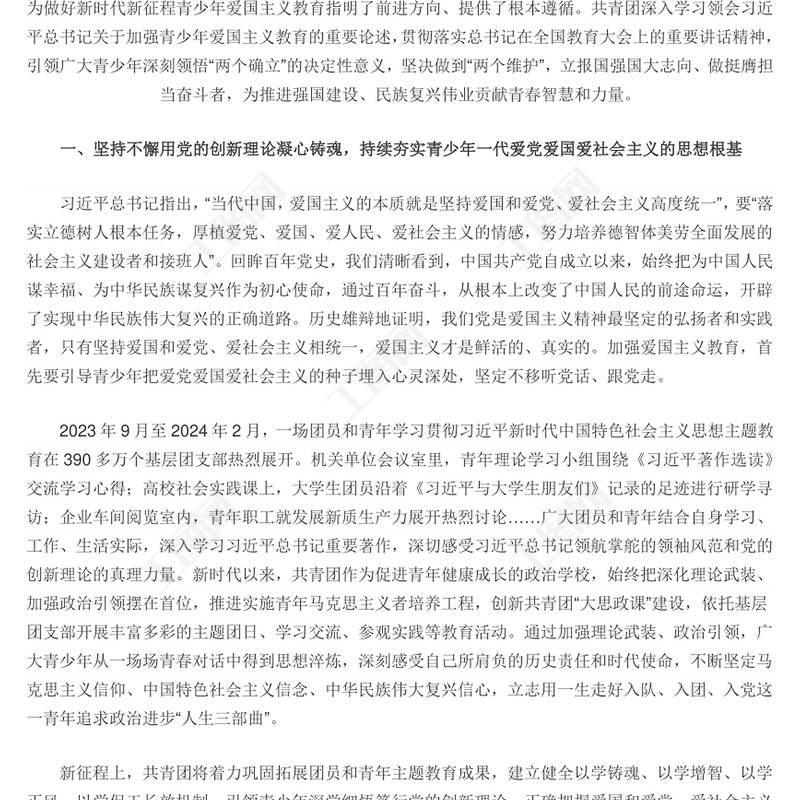 让爱国主义精神在广大青少年心中牢牢扎根PPT红色党建风党员干部学习教育党课(讲稿)