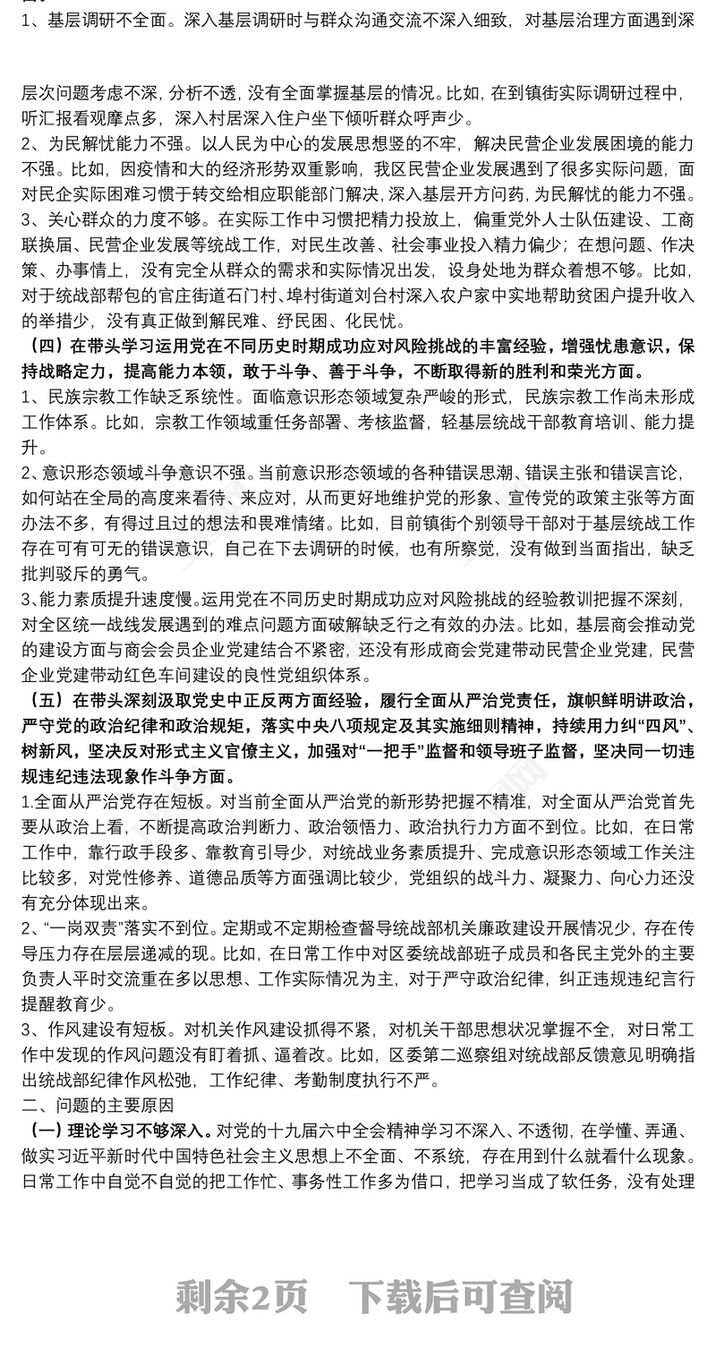 统战部长2021年党史学习教育五个带头民主生活会个人对照检查材料 Array