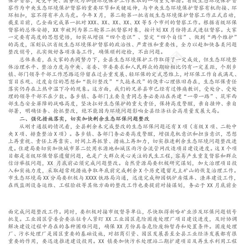 XX县生态环境保护委员会第一次会议暨生态环保问题整改和第二轮省级环保督察迎检工作推进会议上的讲话 Array